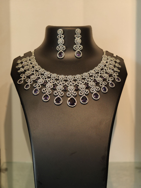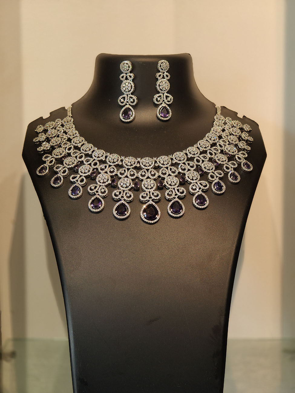 Home / Ornaments / AD Necklace white & purple stone AD Necklace white & purple stone AD Necklace white & purple stone Category: Ornaments Product ID: 1644 Description Description AD Necklace white & purple stone Related products AD necklace white stone set Bridal Ornaments, NecklacePremium Necklace Premium Bridal set green pearl Haaram, Show ChainHaaram Simple Show Chain