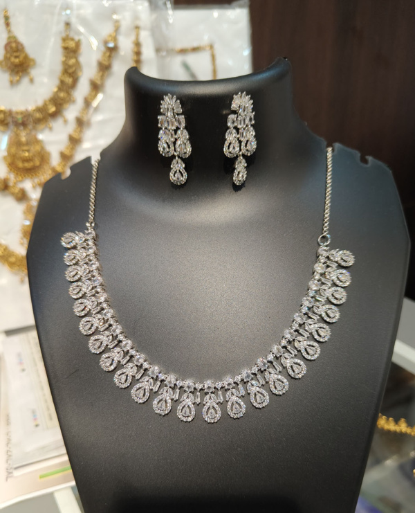 Home / Ornaments / AD Necklace white stone AD Necklace white stone AD Necklace white stone Category: Ornaments Product ID: 1645 Description Description AD Necklace white stone Related products Premium Bridal set red pearl Bridal Ornaments, Choker Necklace Nech-pieceChoker Necklace Nech-piece AD necklace with multi stone set Bridal Antique Set A003