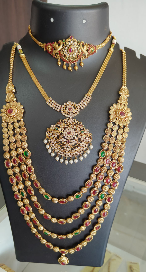 Home / Ornaments / Bridal set A002 Bridal set A002 Bridal set A002 Category: Ornaments Product ID: 1649 Description Description Bridal set A002 Related products Haaram, Show ChainHaaram Simple Show Chain Premium Bridal set white & pink stone AD White stone Necklace set Haaram, Show ChainHaaram (Show chain)