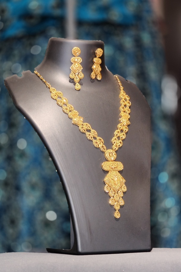 Home / Ornaments / Haaram (Show chain) Haaram (Show chain) Bridal Antique Set A007 Category: Ornaments Tags: Haaram, Show Chain Product ID: 1540 Description Description Haaram (Show chain) Related products Premium Bridal set Gold with white pearl AD necklace white & blue stone set AD necklace with multi stone set Kundan jewllery set