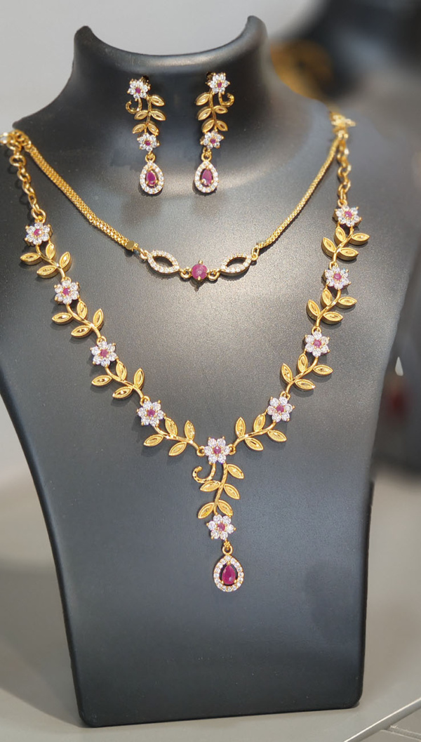 Home / Ornaments / Necklace gold & flower stone Necklace gold & flower stone Necklace gold & flower stone Category: Ornaments Product ID: 1650 Description Description Necklace gold & flower stone Related products Premium Bridal set Gold with white pearl Bridal Ornaments, Choker Necklace Nech-pieceChoker Necklace Nech-piece Haaram, Show ChainHaaram (Show chain) Bridal rental taliparambaAD Necklace heavy white & pista green stone