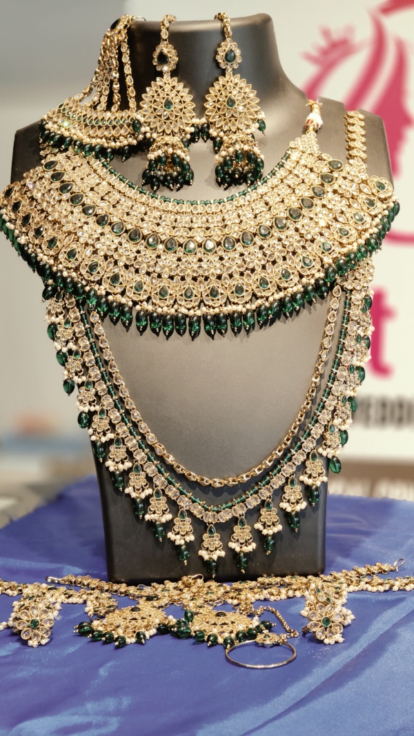 Home / Ornaments / Premium Bridal set green pearl Premium Bridal set green pearl Premium Bridal set green pearl Category: Ornaments Product ID: 1585 Description Description Premium Bridal set green pearl Related products Bridal Ornaments, NecklacePremium Necklace Haaram, Show ChainHaaram (Show chain) AD White stone Necklace set Bridal Ornaments, Choker Necklace Nech-pieceChoker Necklace Nech-piece